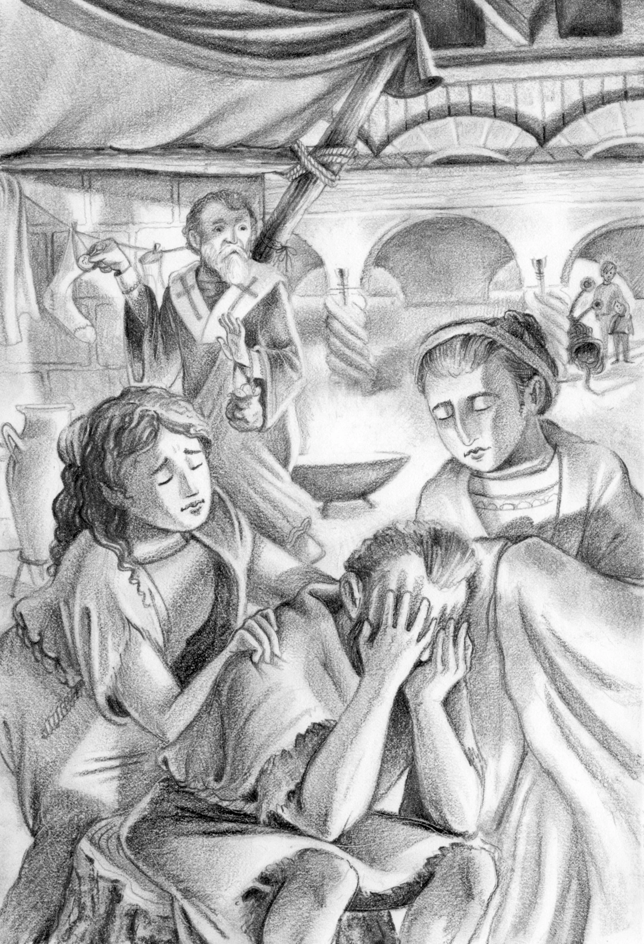 From a work for hire book about the history of Santa Claus. This image depicts the Roman Emperor Constantine freeing Saint Nicholas from prison